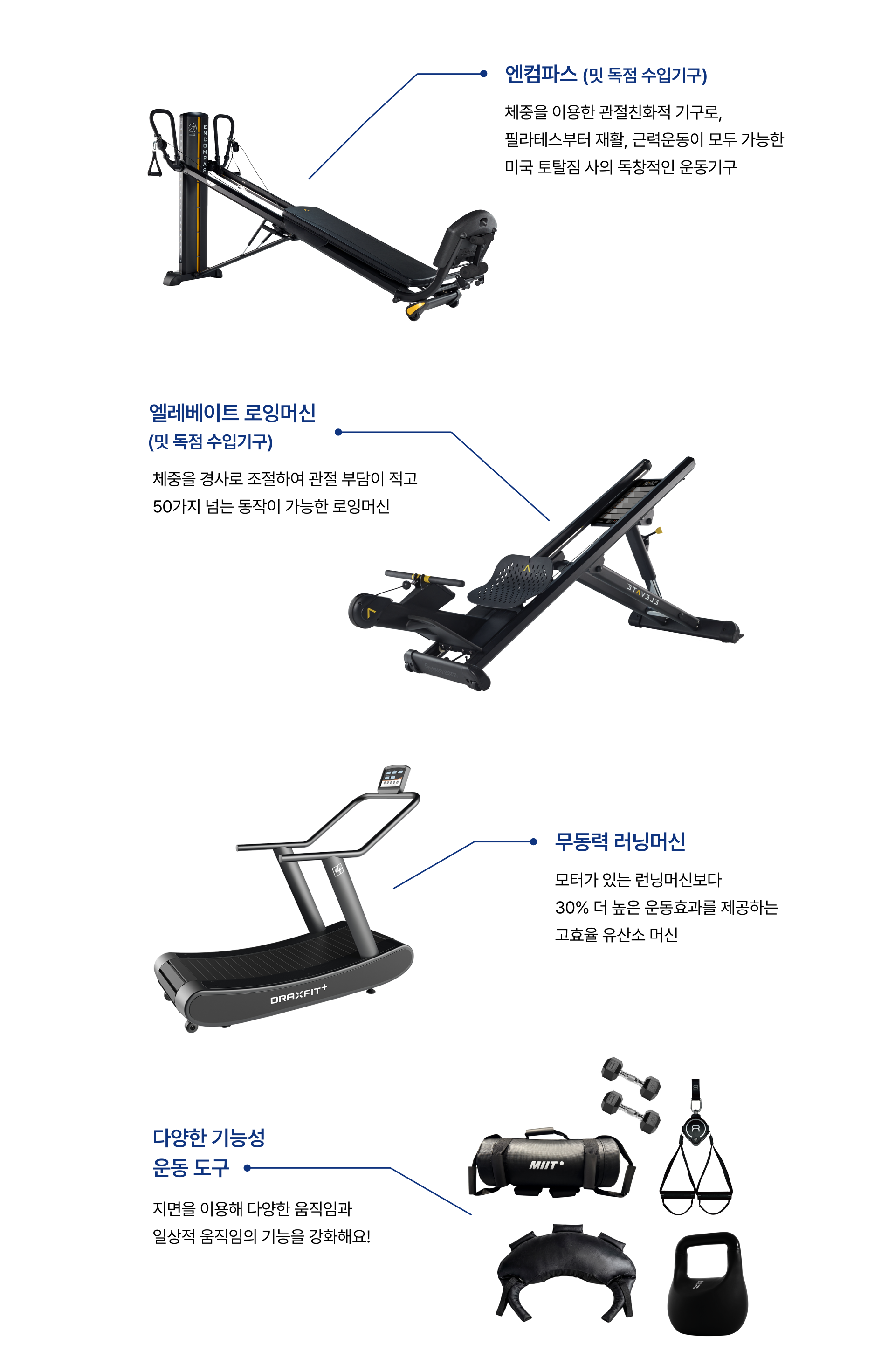 중강도 운동의 최적화 된 기구 라인업