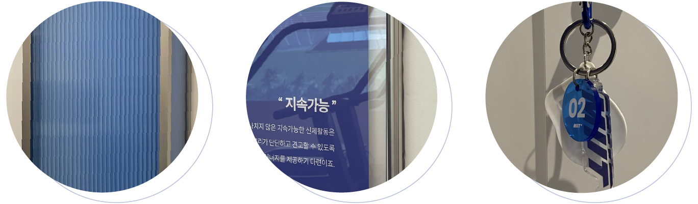 평행선을 이루는 ‘I’의 형태는 우리의 지속 가능성과 밋터들의 나아가는 삶을 의미해요.